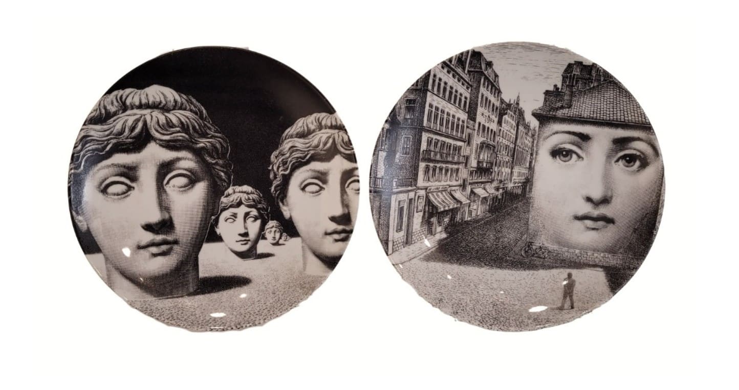 Fornasetti encontró una foto de la soprano Lina Cavalieri en una revista francesa del siglo XIX y la convirtió en su arquetipo femenino, creando más de 350 variaciones entre sus obras, incluyendo platos, muebles y objetos, sin llegar a conocerla nunca. Lo que comenzó como una serie de platos se expandió a más de 400 variaciones documentadas, con un estilo que mezcla el surrealismo, la arquitectura clásica, el Trompe L’oeil, humor y elegancia, creando un estilo inconfundible basado en el blanco y negro, el sol, el tiempo y motivos neoclásicos.