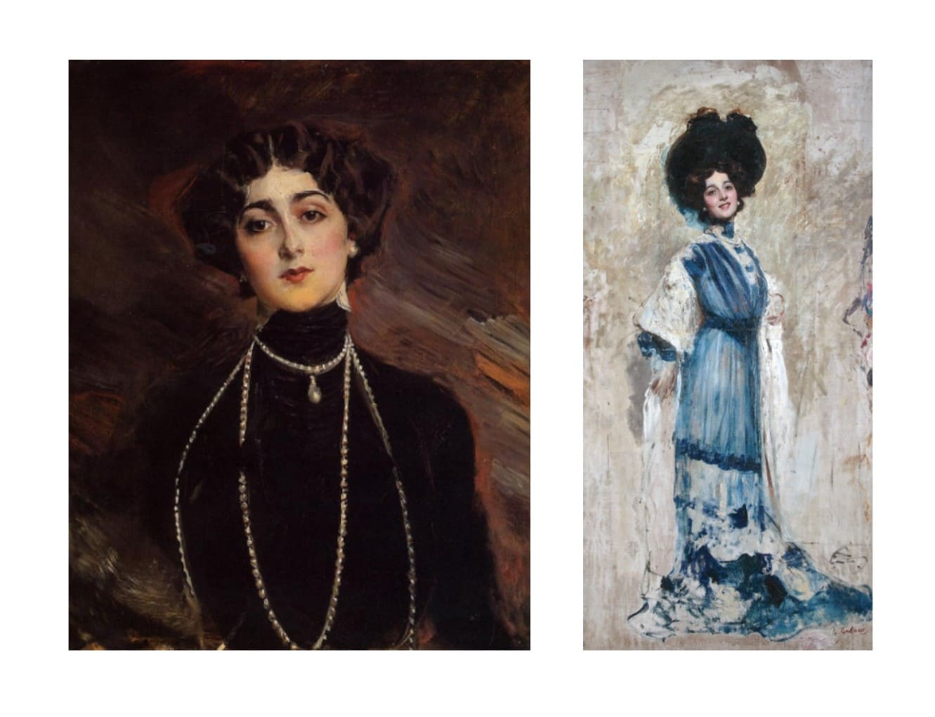 Retratos de Lina Cavalieri por Giovanni Boldini (1901) y Césare Tallone (1900)