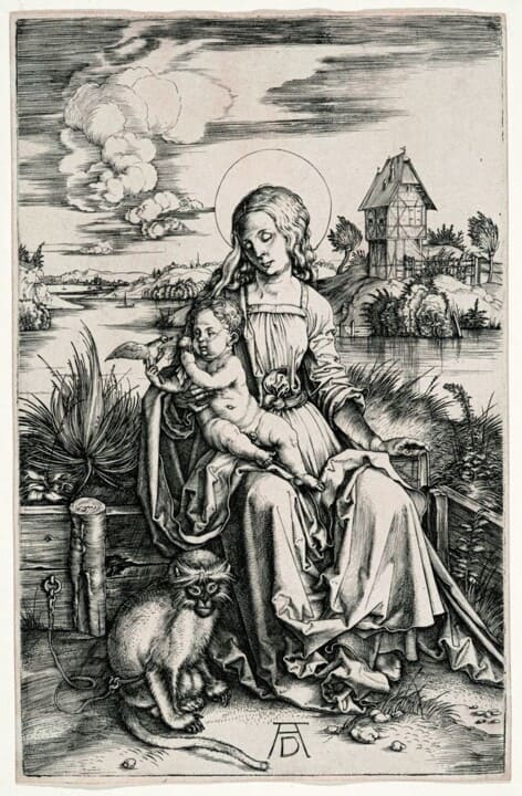 Alberto Durero, Virgen con el Niño y Mono , 1498 ca. Grabado a buril.