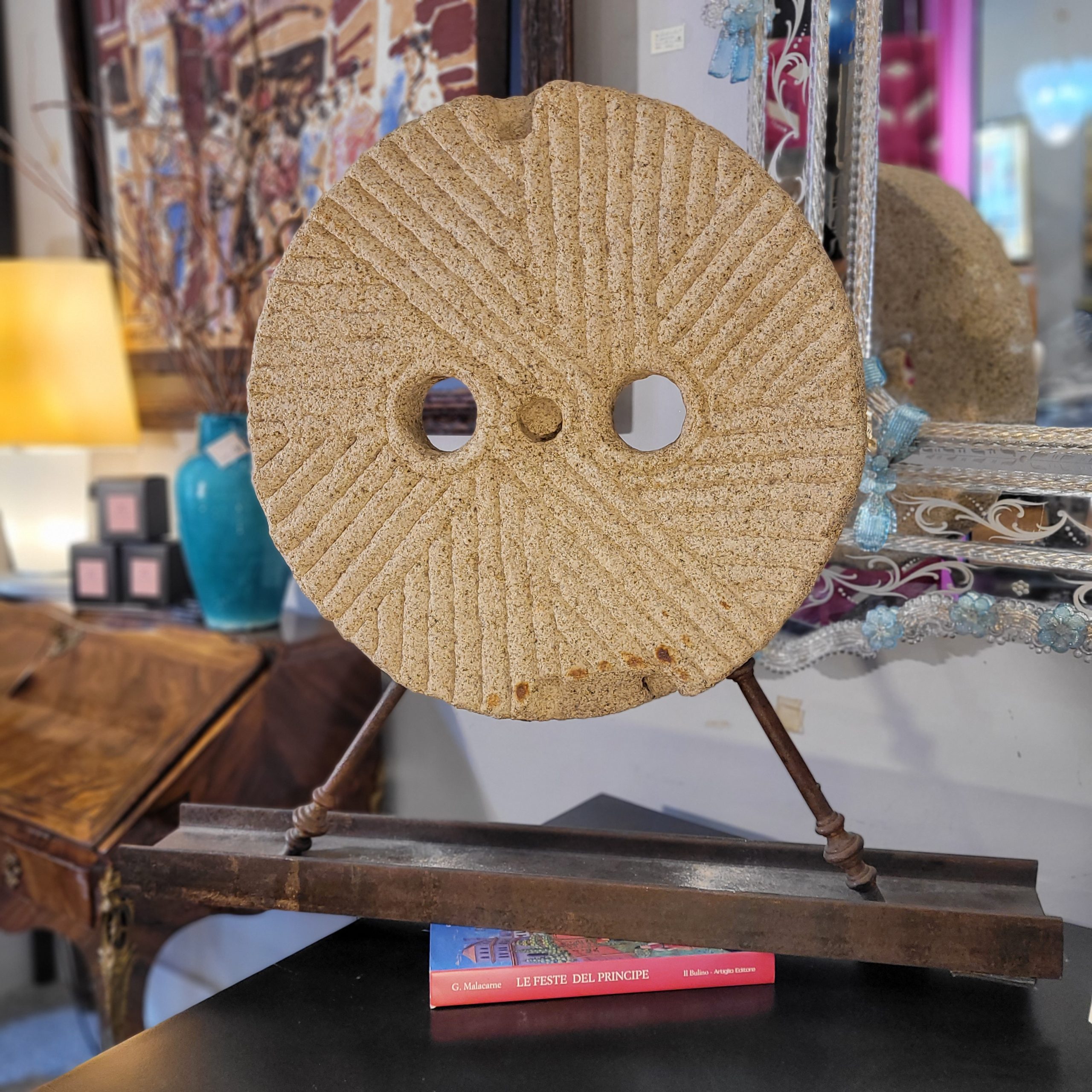 Magnífico busto en terracota realizado en Italia en los años 40. Esta escultura sigue el modelo de la “Alegoría de la risa” de Jean Baptiste Pigalle (1714-1785), importante escultor francés neoclásico. Desprende, por tanto, un aire clasicista inspirado directamente en la Antigüedad Clásica. En la parte inferior, estampillado “Made in Italy” junto a la firma incisa del autor. Presenta peana con marquetería de madera.