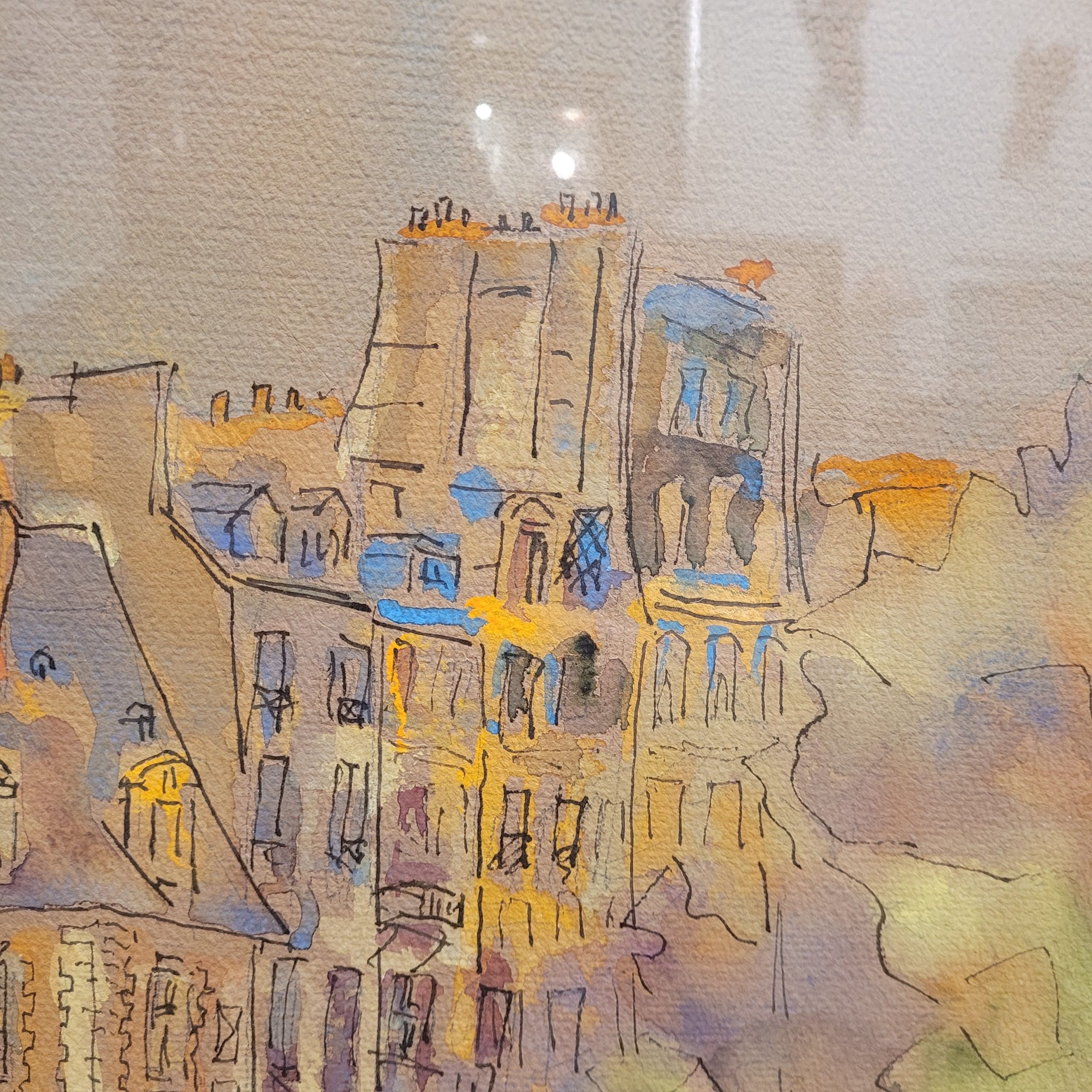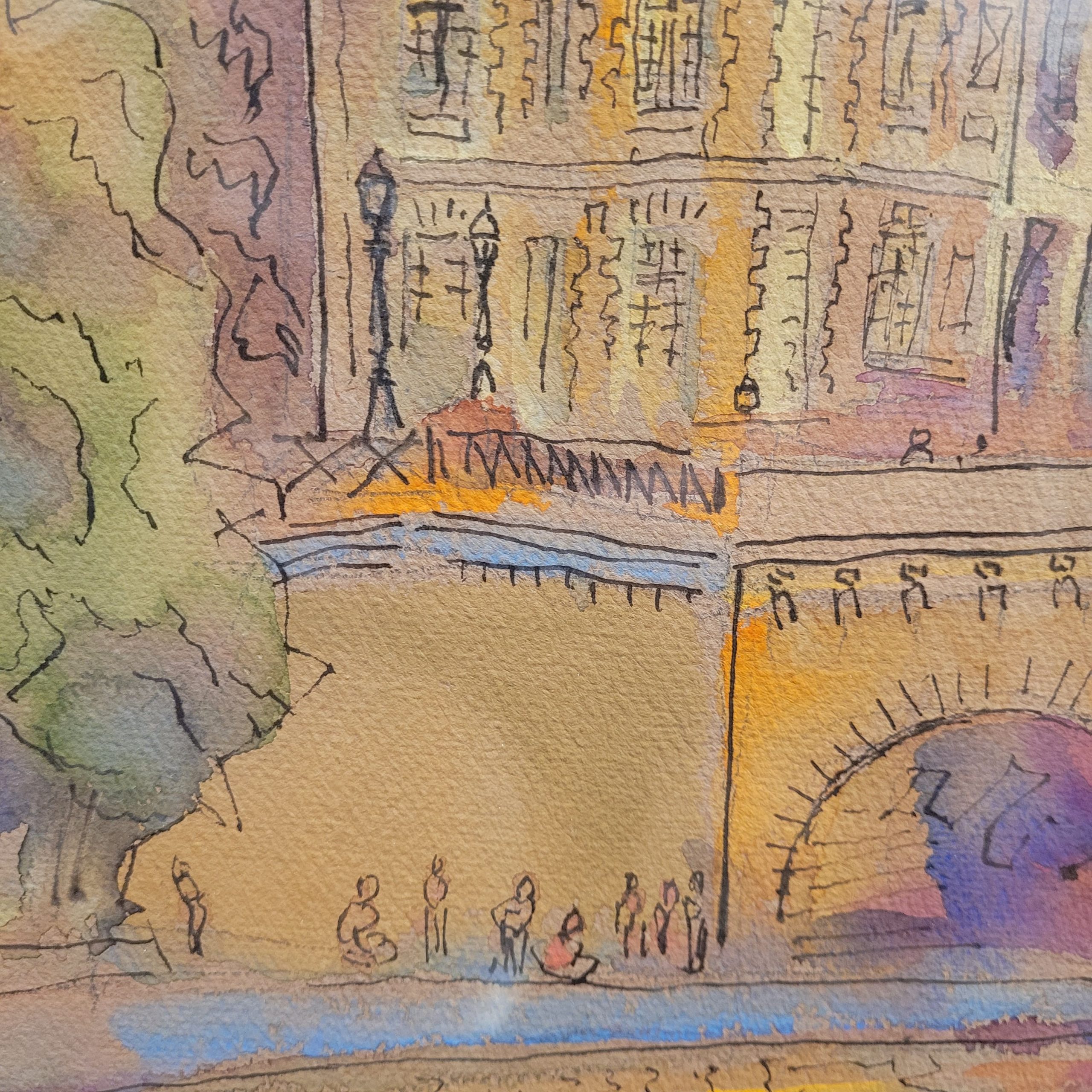 Acuarela sobre papel “Pont Marie, París”, postimpresionismo, firmado Gilis, 1962 – Francia