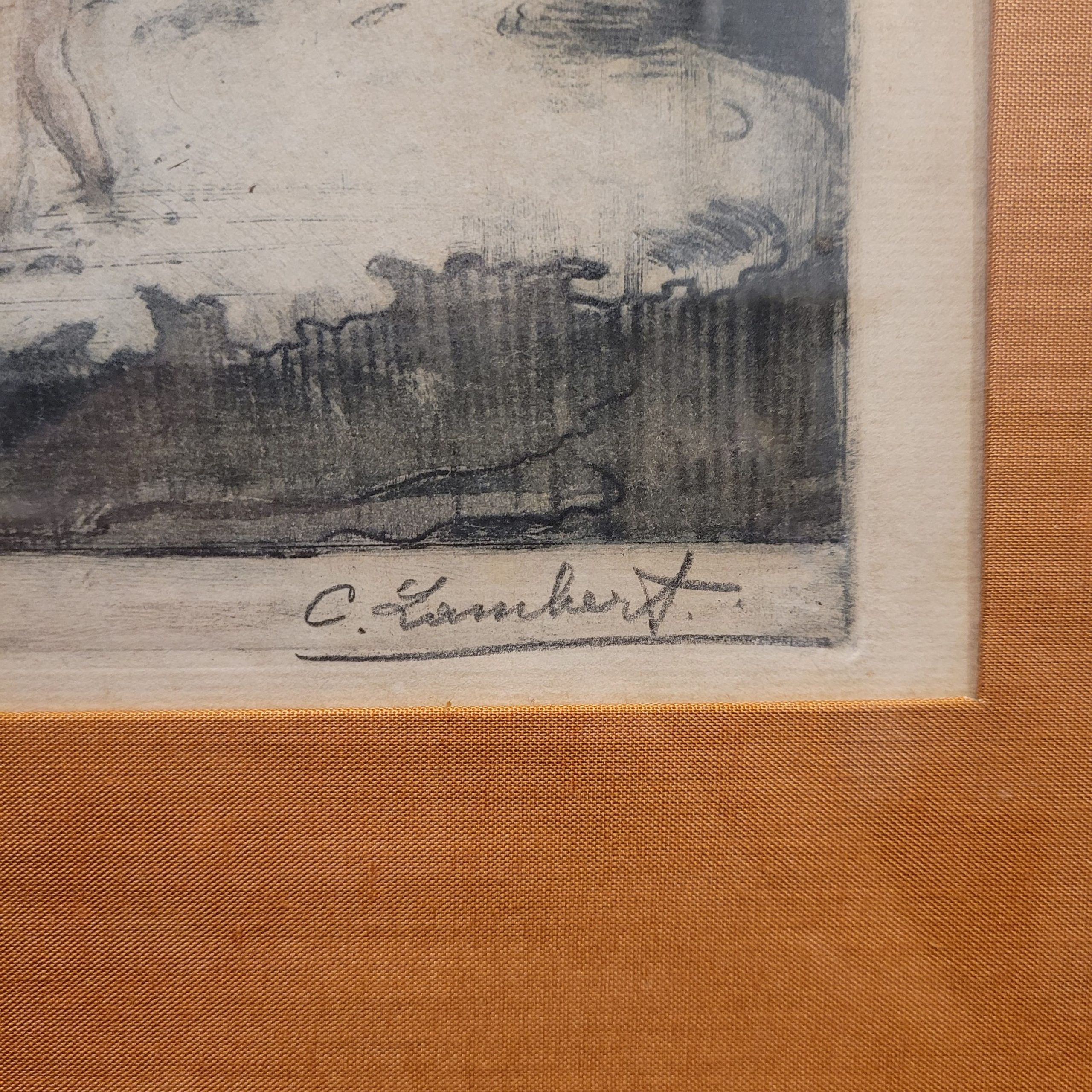 Clement Lambert fue un artista muy prolífico y popular. Aunque trabajaba casi siempre con acuarelas, también realizó diversos óleos. Generalmente, sus obras representaban paisajes, escenas rurales o costeras y de ocio. Una de sus obras se vendió en una subasta en Christie’s. La firma “C. Lambert” se distingue en la esquina inferior derecha.