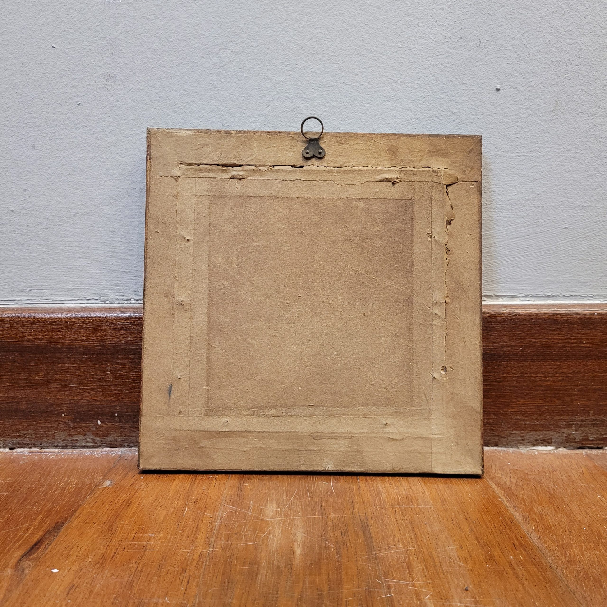 Este tipo de reproducción responde a la difusión de imágenes canónicas de la pintura británica en el siglo XIX, permitiendo su circulación en ámbitos domésticos y coleccionistas. Esta pequeña obra presenta un marco cuadrado, elaborado en madera dorada y ricamente decorada con motivos vegetales geometrizados.