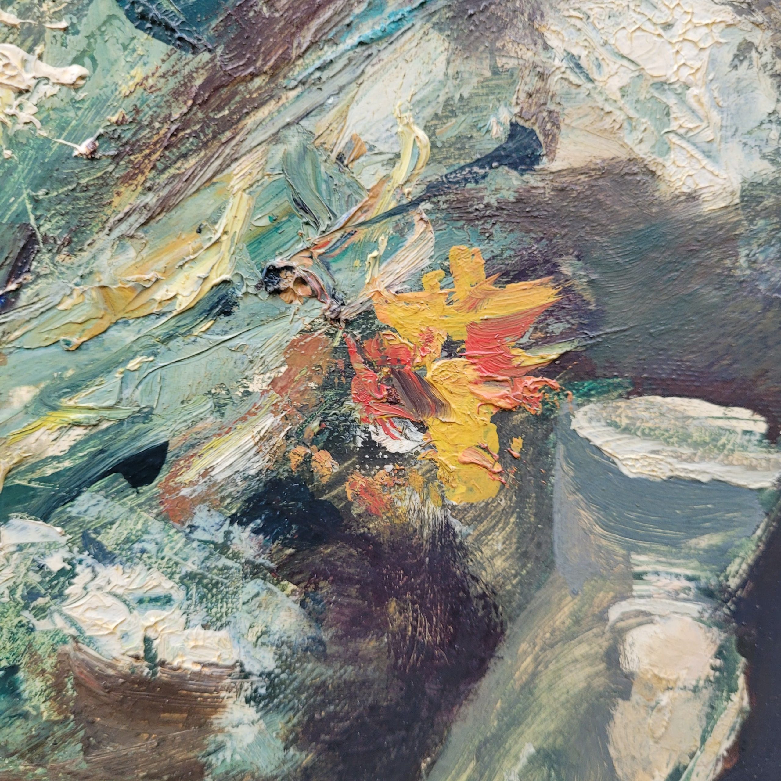 Óleo sobre tabla que representa un magnífico bodegón, obra del artista vallisoletano Juan Antonio Morales. Presenta el estilo característico del género al que corresponde, realista y minucioso, que poco a poco fue ganando peso en la Historia del Arte. El gran artista Caravaggio (1573-1610) fue uno de los primeros artistas que representó naturalezas muertas con conciencia de obra pictórica, pero fueron muchos los que se valieron de él en algún momento de su carrera. Con orígenes en la antigüedad y muy popular en el arte occidental desde el siglo XVII, el bodegón da al artista más libertad compositiva que otros géneros pictóricos como el paisaje o los retratos. Antes de 1700, a menudo contenían un simbolismo religioso y alegórico en relación con los objetos que representaban.