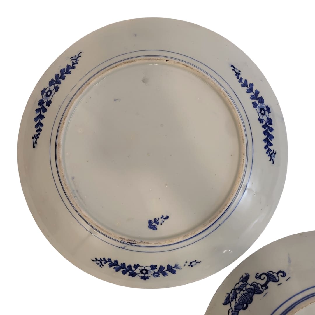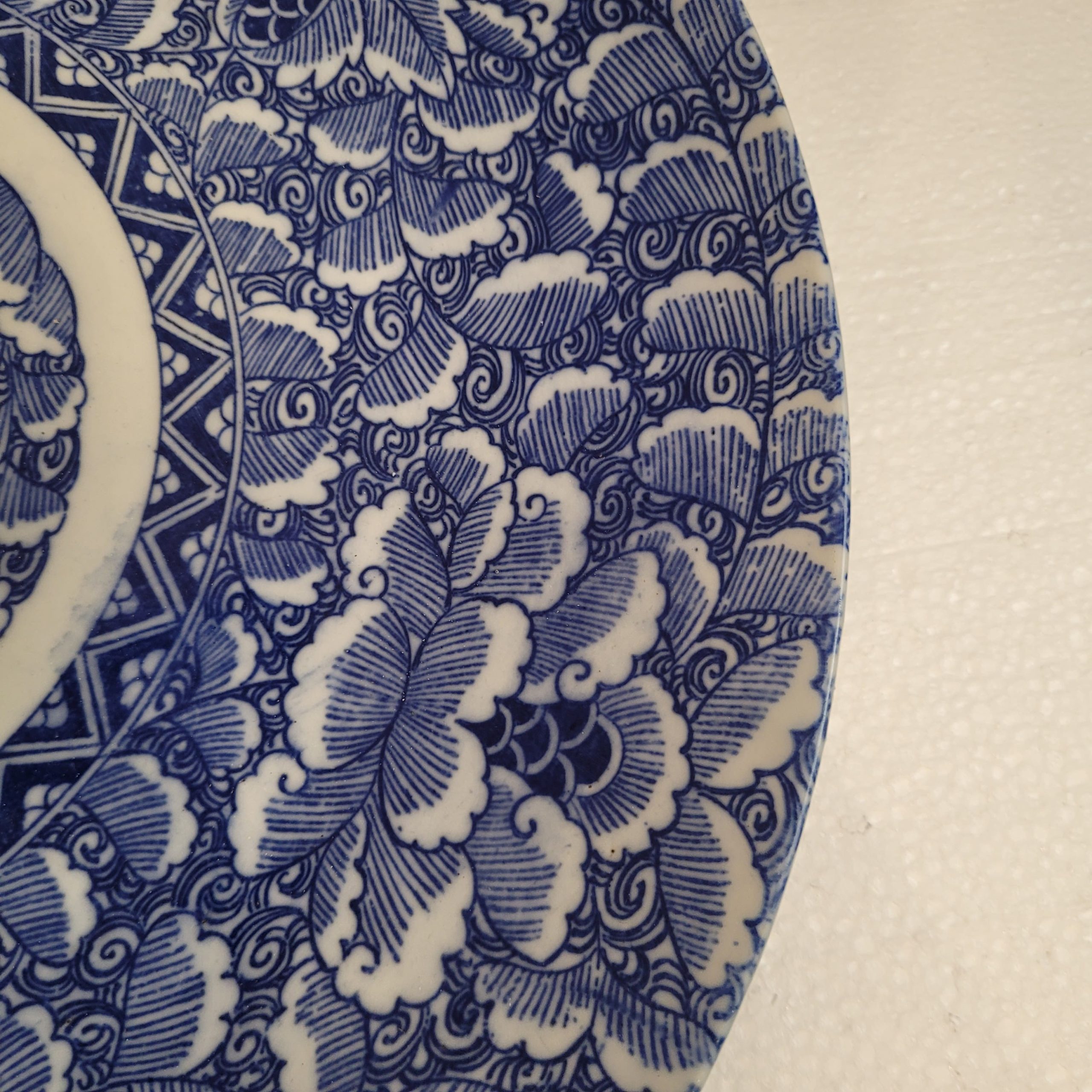 Exquisita pareja de platos o bandejas de porcelana Arita o porcelana de Imari. La porcelana Arita o porcelana de Imari es el nombre occidental con el que se conoce a los productos de porcelana hechos en el pueblo de Arita. Tiene sus orígenes en el siglo XVII, pues un artesano coreano descubrió en 1616 un depósito de caolín en la región de Arita. Cabe destacar que, antes de este descubrimiento, toda la cerámica que existía en Japón era importada de China y Corea. Se combinaron entonces las técnicas de cocido coreanas con la influencia china en los diseños. Es conocida también como porcelana Imari ya que, en el siglo XVII, se exportaba desde el puerto de Imari. Las primeras producciones se caracterizaron por sus elaborados diseños en azul cobalto sobre un fondo blanco, como en el caso de esta pareja. El patrón presenta un diseño floral intrincado y estilizado en ese azul cobalto intenso sobre un fondo blanco, un motivo clásico dentro de la producción de Arita. Estas piezas reflejan la alta calidad de la porcelana japonesa.