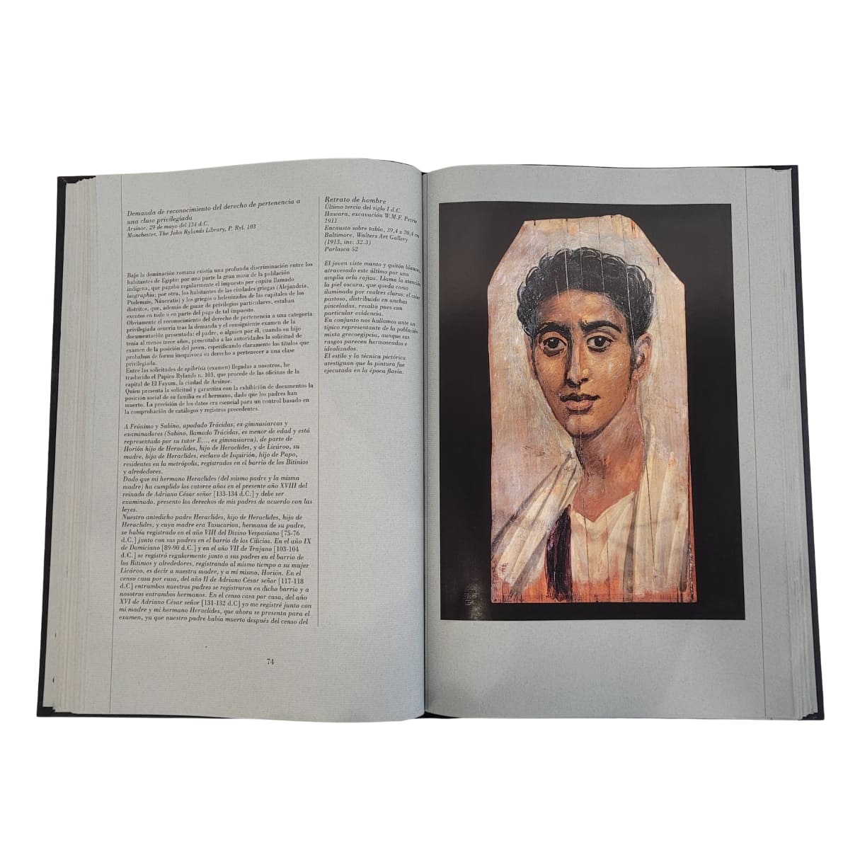 Soberbio volumen dedicado a los retratos de momias hallados en El Fayum, Egipto, testimonio excepcional de la pintura funeraria de la época romana, publicado por la exclusiva editorial italiana Franco Maria Ricci.