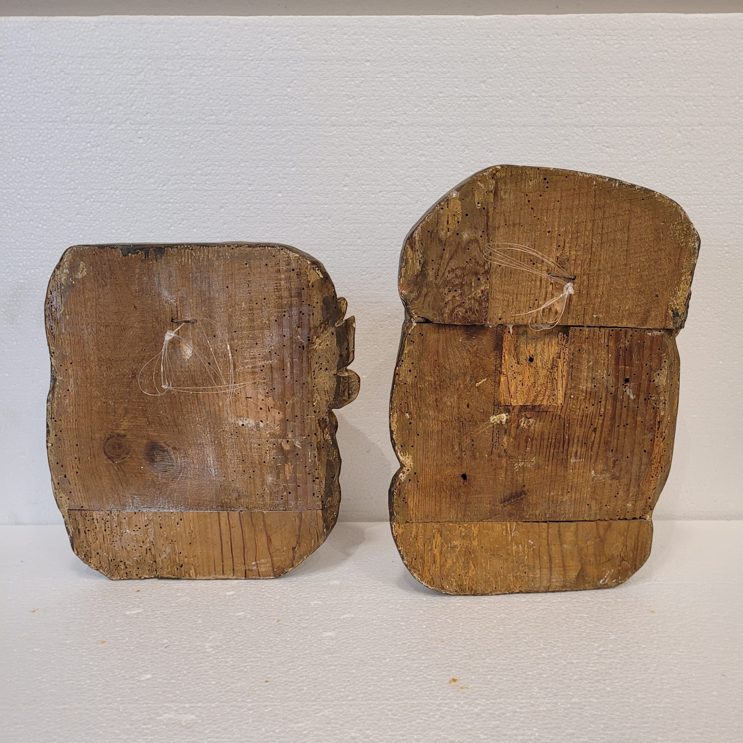 Son dos piezas de altorrelieves rectangulares en madera tallada, policromada y dorada. Se presentan dos querubines de rostro sonrojado, cabellos castaños y acaracolados sobre unos pares de alas doradas. Parecen emerger de una vorágine, de una masa de nubes que hace las veces de base del relieve. Posiblemente podrían formar parte de un conjunto mayor como un retablo o algún otro elemento de ornamento litúrgico.