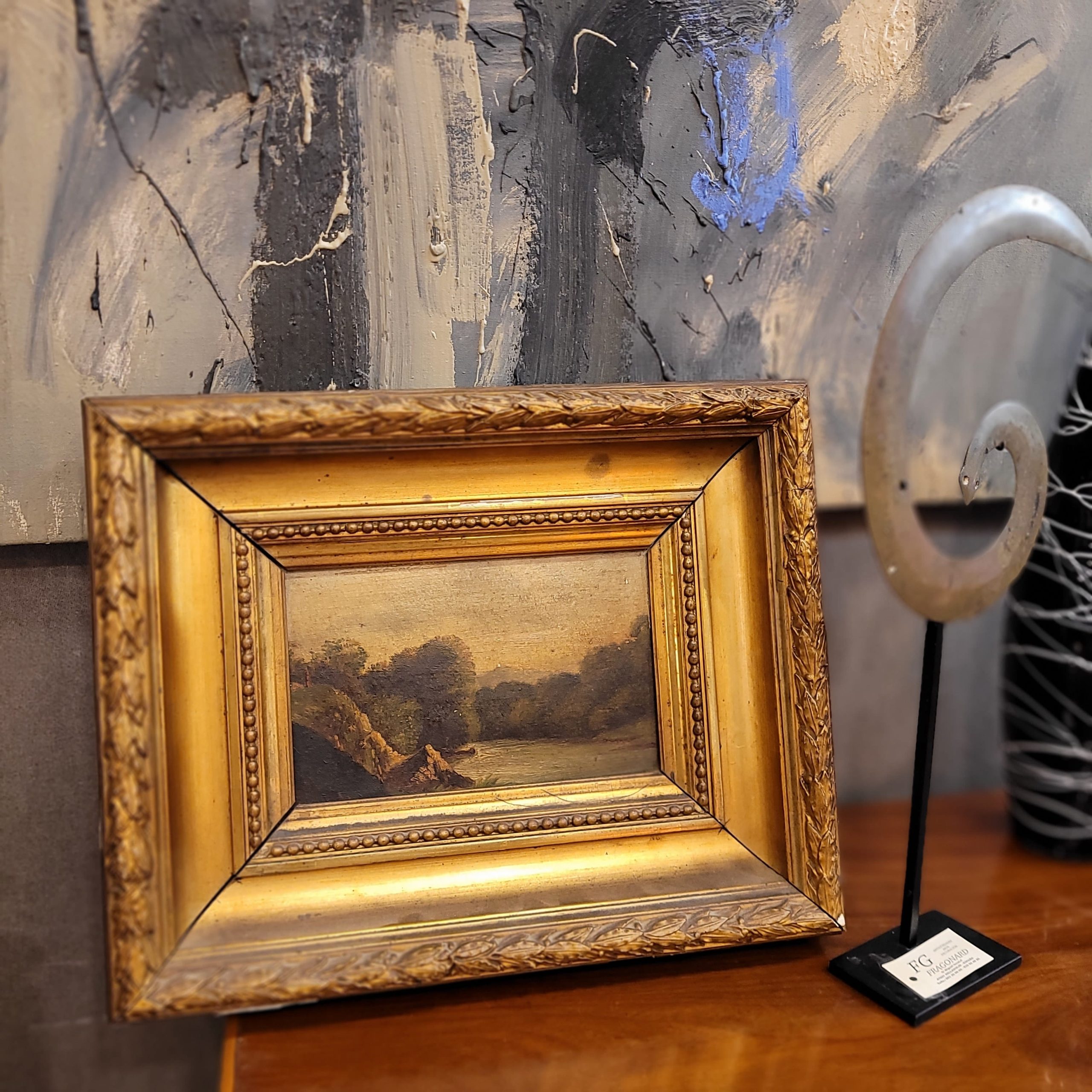 Pareja de grabados acuarelados “Le duc de Joyeuse” y “Le pere Joseph” realizados en la Francia del siglo XIX, con extraordinario marco de madera tallada. Estos elegantes marcos de madera tallada y dorada en estilo Luis Felipe reflejan la sobriedad y la delicadeza características de este periodo, que floreció durante el reinado de Luis Felipe I (1830-1848) en Francia. La combinación de líneas suaves y redondeadas, propias de la estética de la época, aporta una sensación de armonía y equilibrio frente a la forma rectangular de la pieza. El óvalo central, destinado a enmarcar los retratos, está rodeado por una intrincada decoración que fusiona motivos vegetales y a candelieri, y en el espacio entre el óvalo que guarda el retrato y la propia decoración del marco encontramos cuatro estrellas de cinco puntas, una en cada esquina, elementos que evocan la elegancia contenida de la burguesía en ascenso del siglo XIX. Este estilo será relegado por el estilo Napoleón III. Entre las dos estrellas inferiores de ambos marcos se lee una frase lo que posiblemente sea una referencia a los retratados, en uno de ellos “LE DUC DE JOYEUSE”, en el otro “LE PERE JOSEPH”.