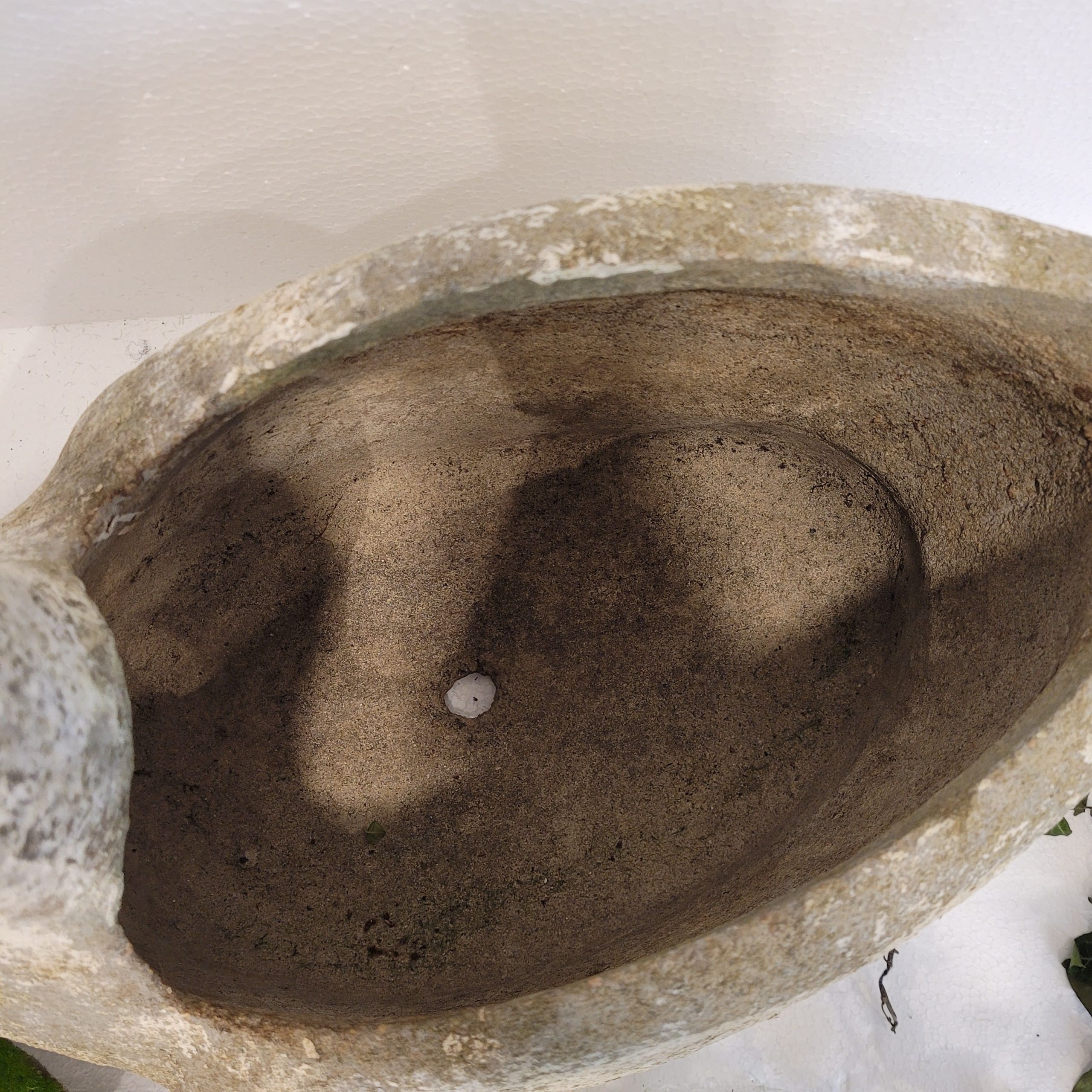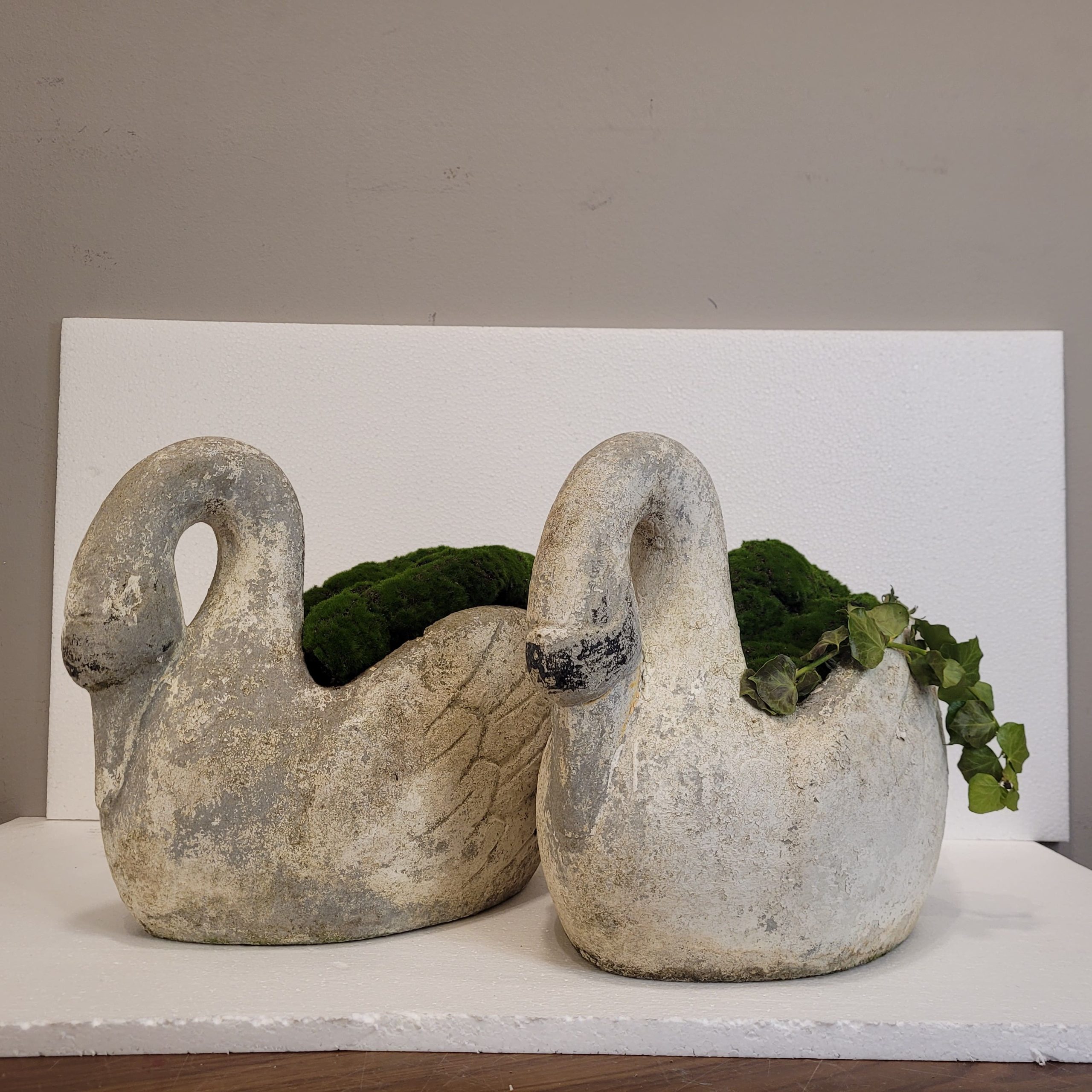 Magnífica pareja de jardineras en forma de bellos cisnes de hormigón, realizados en la Francia del primer cuarto del siglo XX. Las piezas exhiben una hermosa pátina típica de la época y su envejecimiento natural en el exterior. Originalmente, las cabezas estaban policromadas, aún se pueden apreciar rastros de ello en los picos de los animales. Las figuras están exquisitamente elaboradas; el cuello del cisne, delicadamente curvado, irradia gracia y fuerza, y posee una gran belleza estética.