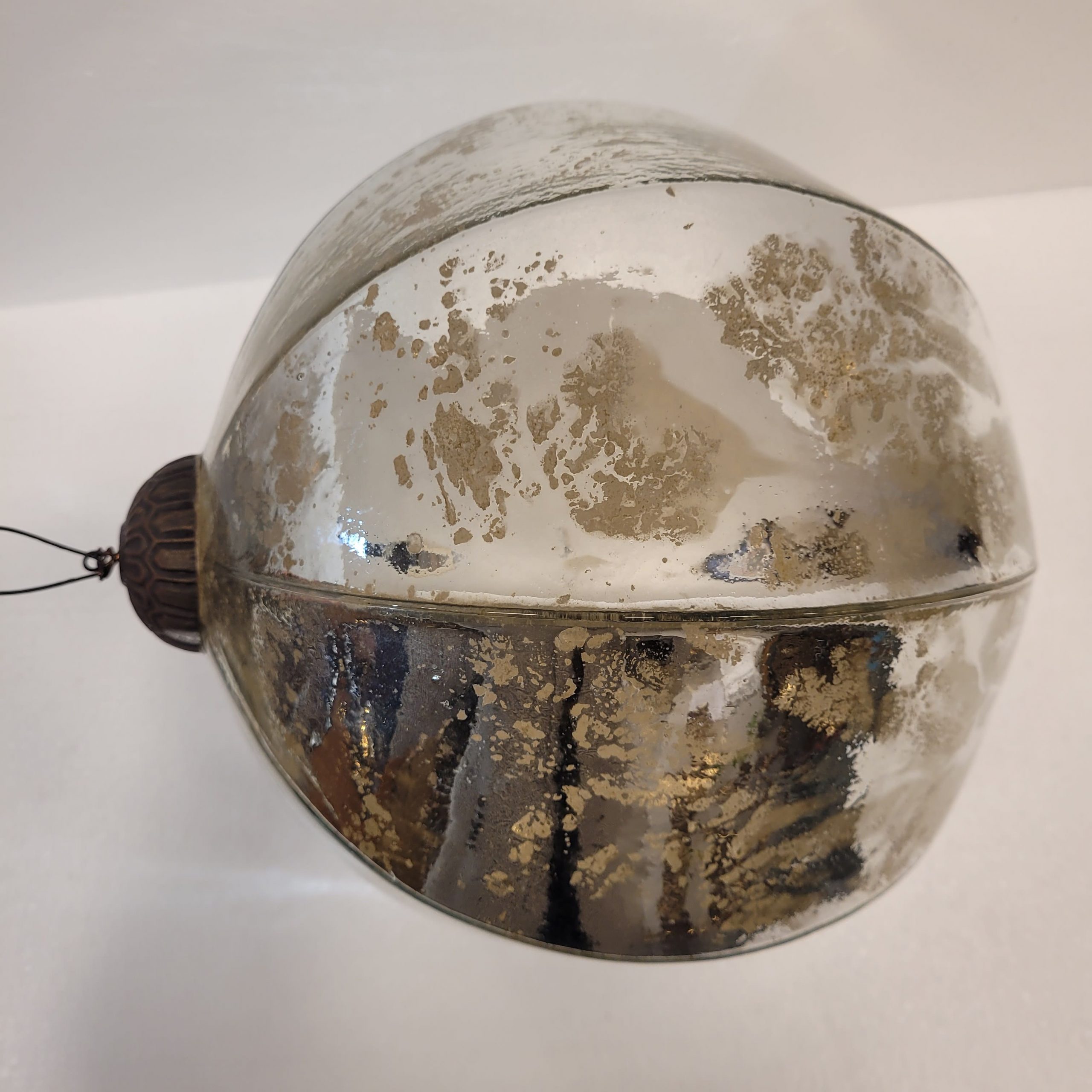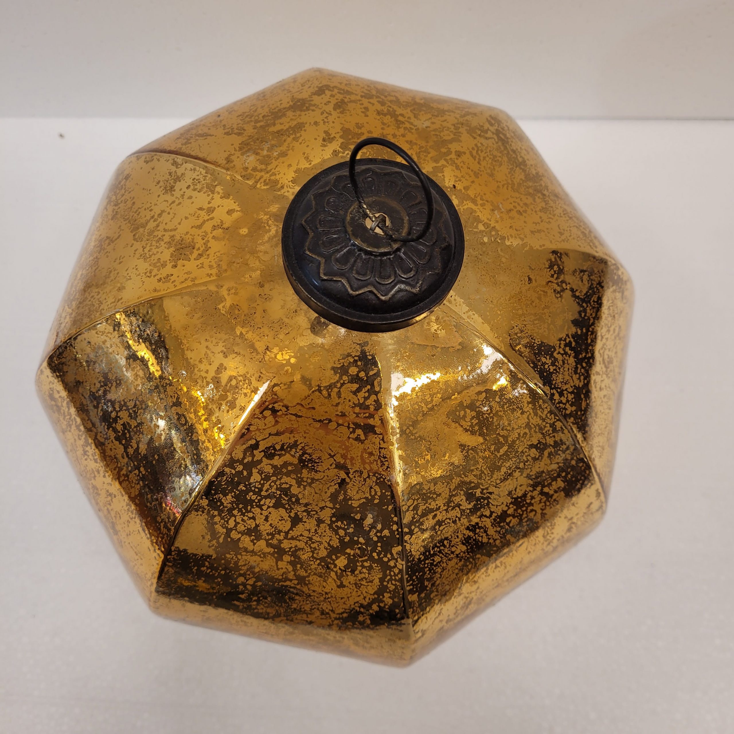 Divertida y original pareja de bolas o esferas formadas por ocho facetas distribuidas de manera simétrica, creando una forma poligonal y ligeramente achatada. En ambas, el vidrio está eglomizado, en una de ellas en dorado y, en la restante, en plateado, creando un llamativo efecto de espejo, perfecto para decorar cualquier rincón. El eglomizado es un término de origen francés que alude a una técnica de dorado o plateado del vidrio en el que la lámina de oro o plata se aplica en el reverso de la superficie de un objeto de vidrio y, posteriormente, se protege con otra capa de vidrio o con un barniz. Se podría completar con el grabado y/o pintado de diversos diseños o escenas.