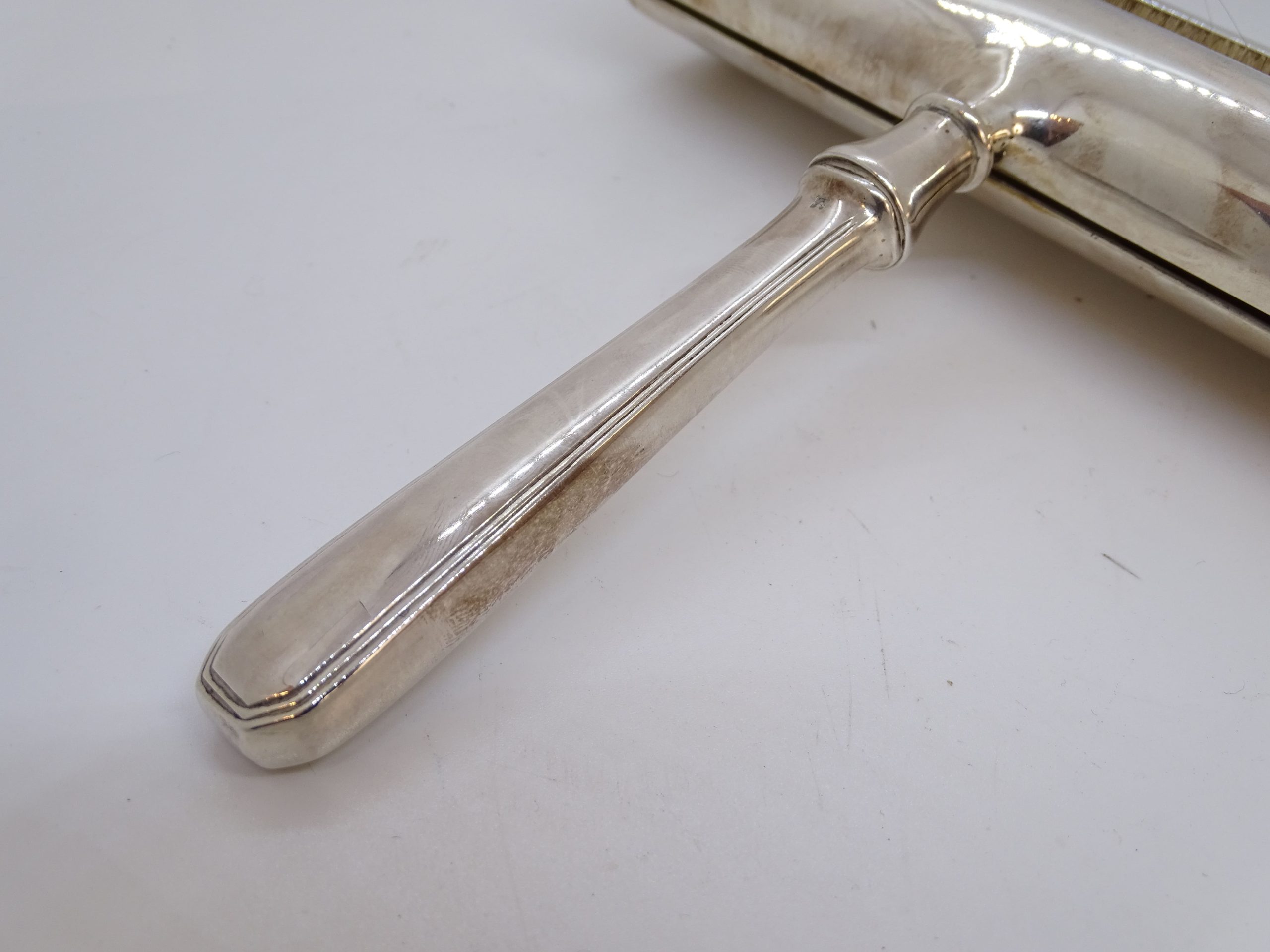 Refinado recogemigas de la prestigiosa casa francesa Christofle, modelo «Le Grillon», fabricado en alfenide y contrastado con el punzón Christofle, correspondiente al utilizado por la firma francesa entre 1935 y 1983. Este recogedor de migas lleva inscrita la fecha 7-X-58 en la tapa superior. Dispone de un cepillo giratorio interno, al lado del cual están inscritos el modelo «LE GRILLON» y «104 UNIS FRANCE».