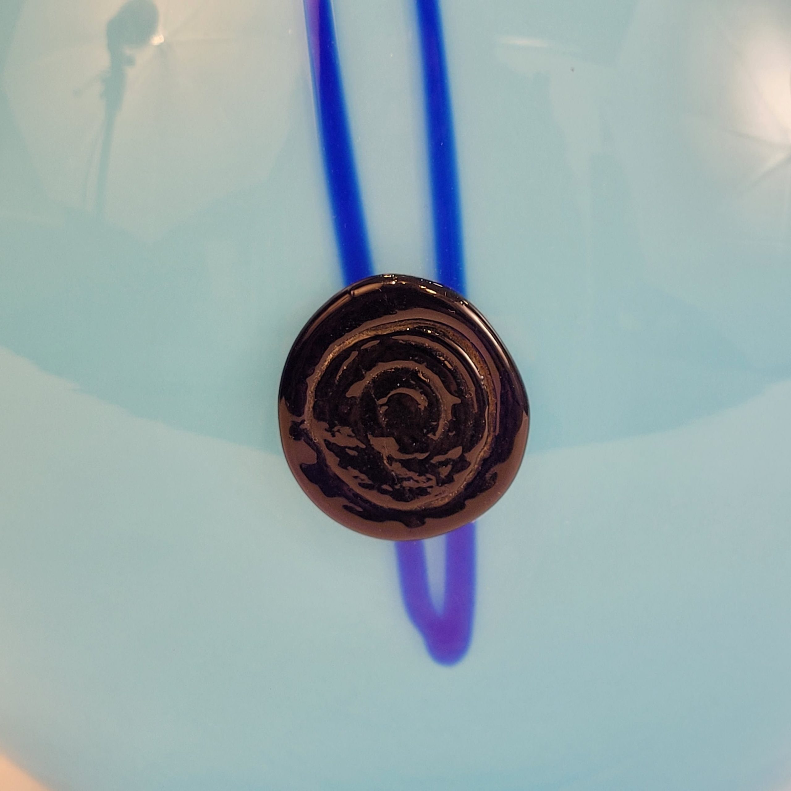 Excepcional lámpara de mesa, refinada y hermosa, con un perfil esférico de vidrio curvado de un exquisito azul cielo, adornado con intensos adornos de vidrio azul. El vidrio se moldeó mediante calor, estirando y dando forma a los motivos, añadiendo un toque escultural que contrasta con la estética suave del cuerpo de la lámpara. La parte superior es de latón dorado. Se ha encargado una nueva pantalla de tela azul intenso, que complementa cuidadosamente la pieza principal. Esta lámpara, testimonio del estilo Art Déco francés y elaborada en el taller de Charles Schneider, es una pieza altamente decorativa que aporta carácter y presencia a cualquier espacio.