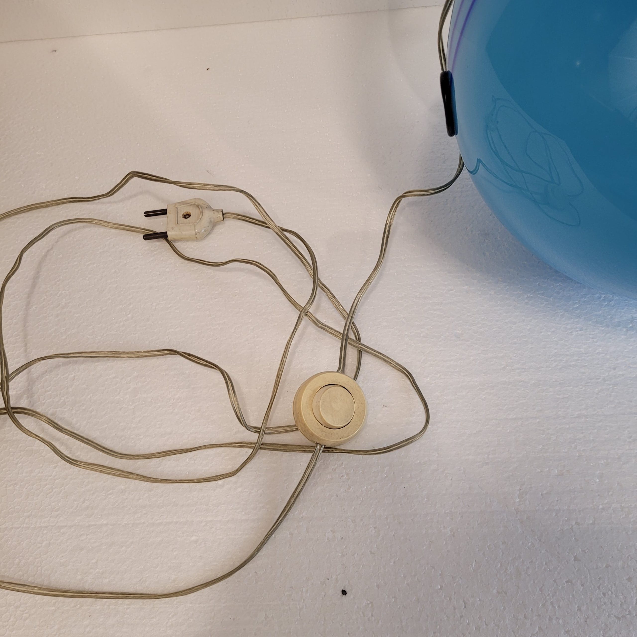 Lámpara de mesa Art Déco, esfera de vidrio azul, taller Charles Schneider, 40’s – Francia