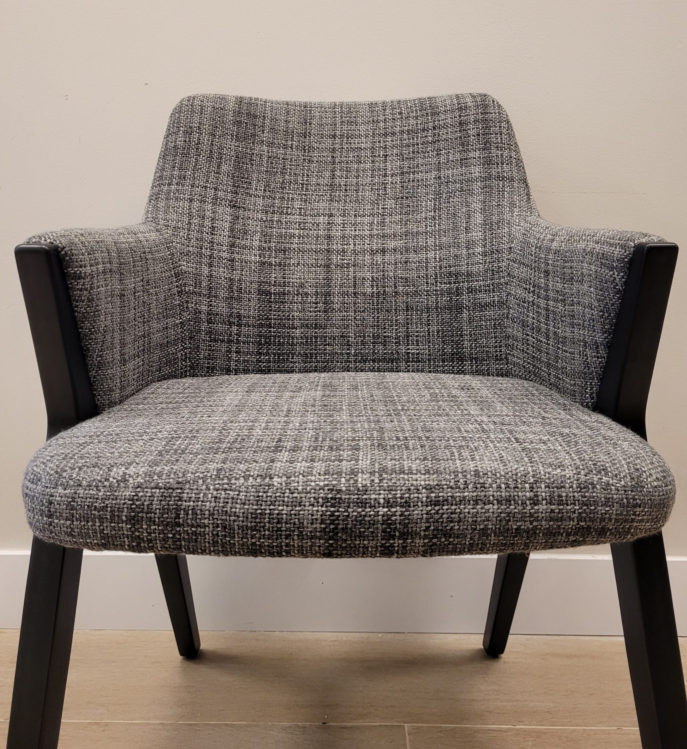 Magnifica silla modelo Kompass diseñada por Roberto Tapinassi y Maurizio Manzoni para Roche Bobois. Esta bridge cuenta con una estructura exterior en madera de haya lacada de color negro. Como es común en esta casa, se emplean materiales de la mejor calidad; su cavidad está compuesta por un multilaminado también de haya, rellena de espuma HR y revestida con tela Sole Atracita.